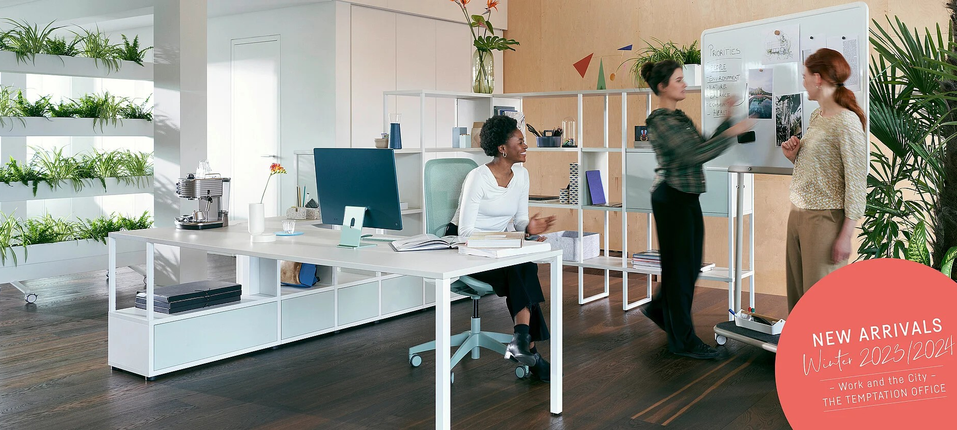 Zur ganzheitlichen Bürogestaltung gehören sowohl Drehstühle und Schreibtische als auch Schränke und Stauraum. Modulare Büromöbelsysteme von Sedus machen Organisation und Ordnung ganz einfach.